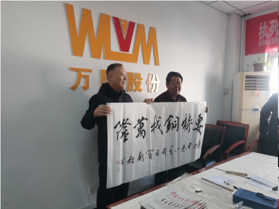 煙臺(tái)萬隆真空冶金股份有限公司董事長(zhǎng)王風(fēng)德、總經(jīng)理陸明峰,副總經(jīng)理李宗廣熱情接待了中國(guó)書畫藝術(shù)促進(jìn)會(huì)煙臺(tái)分會(huì)付主席兼秘書長(zhǎng)曹大溪,中國(guó)書協(xié)、中國(guó)美協(xié)會(huì)員、山東省書協(xié)顧問、煙臺(tái)市書協(xié)名譽(yù)主席、中國(guó)書畫藝術(shù)促進(jìn)會(huì)煙臺(tái)分會(huì)執(zhí)行主席寧蘭智,中國(guó)書協(xié)會(huì)員、山東省書協(xié)理事、篆刻委員會(huì)付主任、煙臺(tái)市書協(xié)主席姜玉松,中國(guó)書協(xié)會(huì)員、煙臺(tái)市書協(xié)付主席、高新區(qū)書協(xié)主席趙向森,中國(guó)書協(xié)會(huì)員、山東省書協(xié)理事、煙臺(tái)市書協(xié)付主席宮慶全,中國(guó)書協(xié)會(huì)員、山東省書協(xié)理事、煙臺(tái)市書協(xié)付主席兼秘書長(zhǎng)孫秀杰。他們現(xiàn)場(chǎng)揮毫潑墨,展示了精湛的書法技藝,讓企業(yè)員工近距離感受到了書法藝術(shù)的魅力。